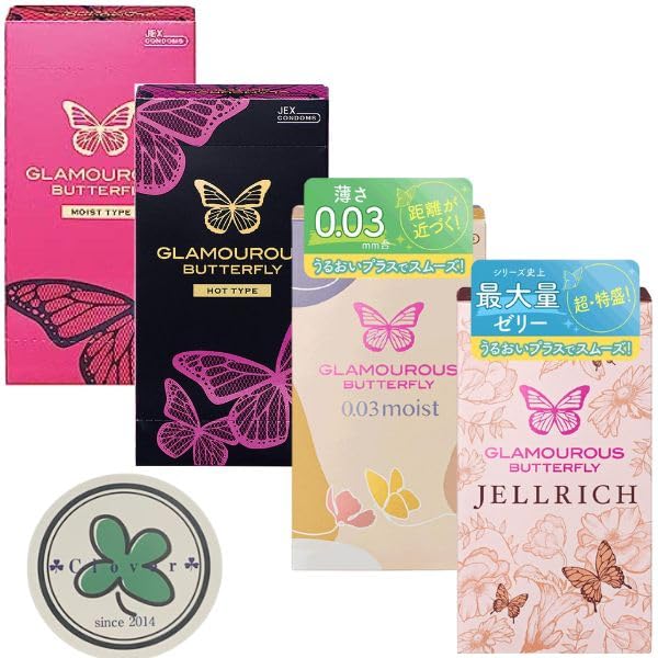 Condom Glamorous Butterfly 4 Box Set Hot Moist Gel Rich Moist Gex Cute Package Clover Sticker Set 0.03