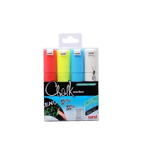 Uni-ball - pwe8k - lot de 4 marqueur craie - pointe large - assortiment de couleurs (import royaume uni)