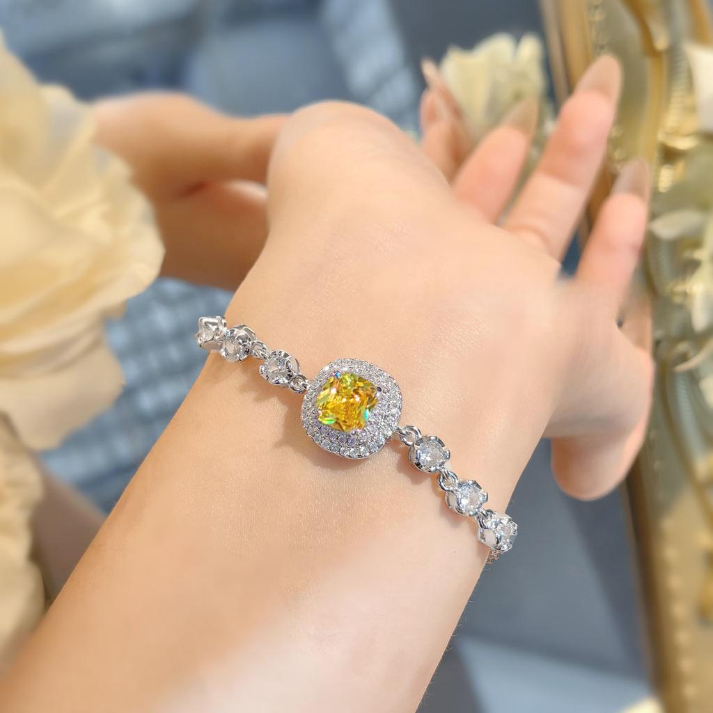 Light Luxury Temperament Sugar Cube Radiant Yellow Diamond Bracelet Advanced Sense Niche Exquisite Simple Argyle Yellow Diamond Women
