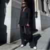 Lässiges Plissee-Revers-Hemd-Hosen-Set Damen Locker Einreihig Langarm Bluse Gerades Bein Hose Damen-Outfits