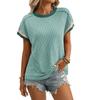 Ein neues Sommer-T-Shirt mit Rundhalsausschnitt, gedrehten Außennähten, kurzen Ärmeln und lockeren Farbblöcken