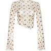 Damen Neues Spice Girls Sexy Durchsichtiges Netzoberteil Bedrucktes Langarm-T-Shirt Schlagärmel Saum