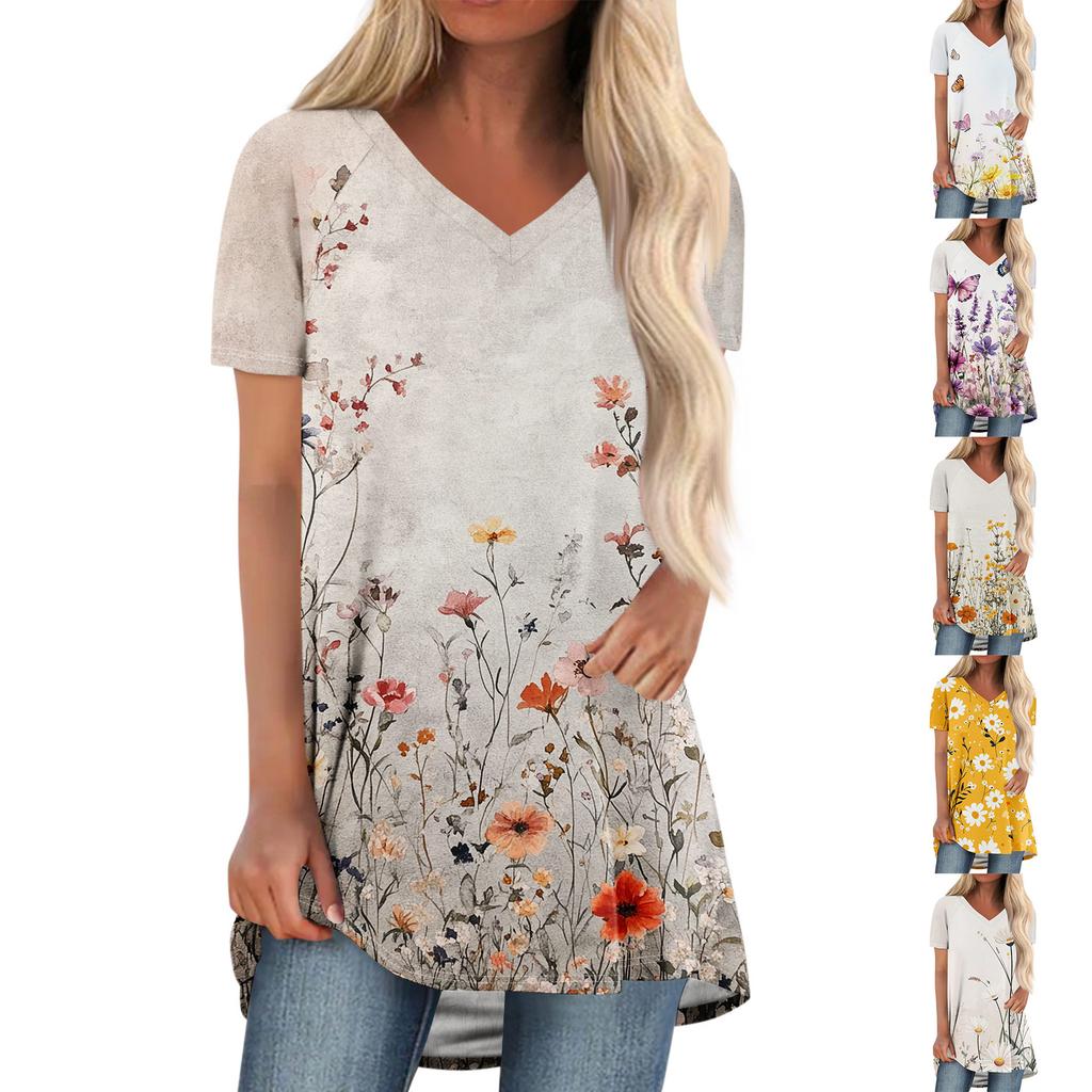 Damen Kurzarm Plissee Lose Tops Plus Size Casual Tops V-Ausschnitt Kurze Ärmel Casual Sommer T-Shirts Damen Tops T-Shirts Shirts