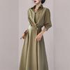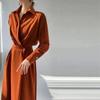 Sommer Neu Elegant Mode Einfarbig Schlicht Taille Langkleid Damen Polokragen Temperament Allround-Kleider Vestidos De Fiesta