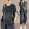 Damen Sommer Einfarbig Locker Lang Kurzarm Oberteil Übergröße Sportset Büroanzug Kurzarm + Hose 2-teiliges Set