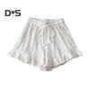 Damen-Shorts mit Waffelstrick, Kordelzug, elastischer Taille, Rüschen-Shorts, weites Bein, fließende Shorts, Lounge-Sommer-Casual-Outfit