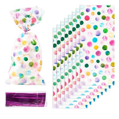 100 Stück Bunte Süßigkeitstüten Sortiertes Punkt-, Streifen-, Sternmuster Zellophan-Geschenktüten