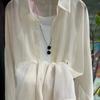 Perlglanz Helles Garn Damen Sommer Design Sinn Dünn, Leicht Transparent Langärmlig Schick Lässig Lockeres Hemd