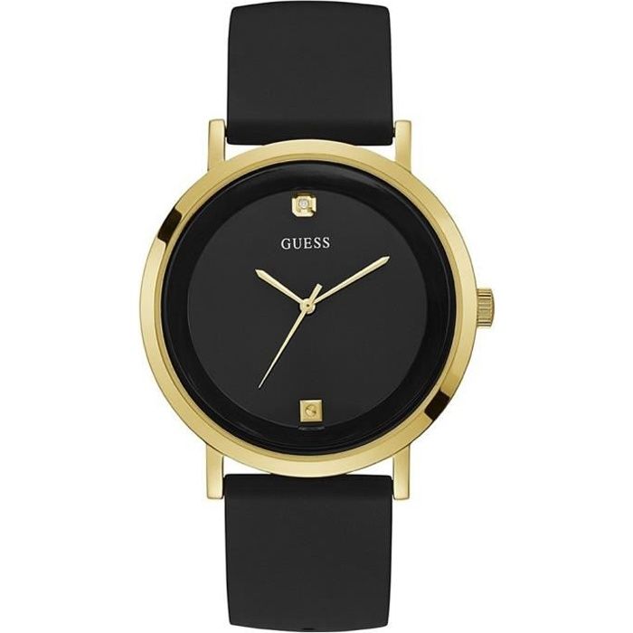 Montre Homme - GUESS - W1264G1 - Bracelet Silicone Noir - Boîtier Acier Plaqué Or - 44mm