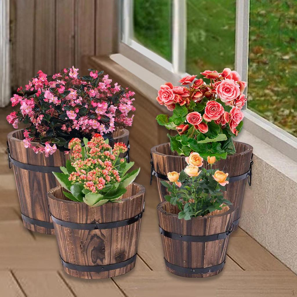 - 【Vielseitig dekorativ】: Mit ihrem schönen Aussehen und ihrer großartigen Textur dienen diese Fasspflanzgefäße im Vintage-Stil als großartige Dekorationselemente für Ihr Zuhause.. Sie werten das Ambiente von Gärten, Balkonen, Büros oder jedem anderen gewünschten Ort auf.