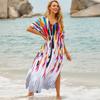 Damenmode Sommer Frühling Farbblockdruck 1/2 Ärmel V-Ausschnitt Lose Taille Freizeitkleider