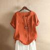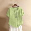 Damen Sommer Vintage Lässig Baumwolle und Leinen Kurzarm T-Shirt Damen Locker Übergröße Knopf T-Shirt Tops