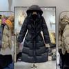 Weiße Entendaunen Taille Lange Schnürung Abnehmen Kapuze Daunenjacke Frauen Dicker über dem Knie mit Kapuze