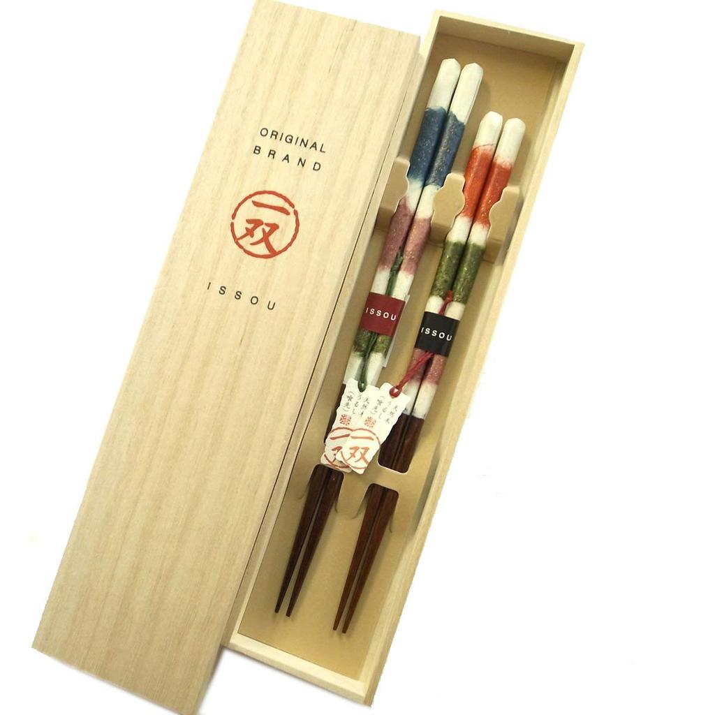 Achte Generation Harimaya Issou Yushin Essstäbchen-Set in Paulownia-Schachtel Hergestellt in Japan