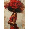Abstrakte Blumen Kopf Haar Schwarz Afrikanisches Mädchen Frau Boho Poster Leinwand Malerei Wandkunst Bilder für Wohnzimmer Heimdekor