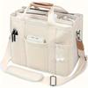 Große Kapazität Multi-Pocket-Umhängetasche mit Fach, Multifunktions-Handtasche, robuster Griff, Beige