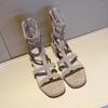 Französische Römersandalen für Mädchen im neuen Märchenstil 2025, dicke Ferse, hoher Absatz, Sommer mit Rock, Reißverschluss, coole Stiefel, Flut