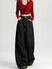 Damen 2024 Herbst Dunkelblaue High-Waist Wide-Leg Jeans - Bodenlang, Lockere Passform.