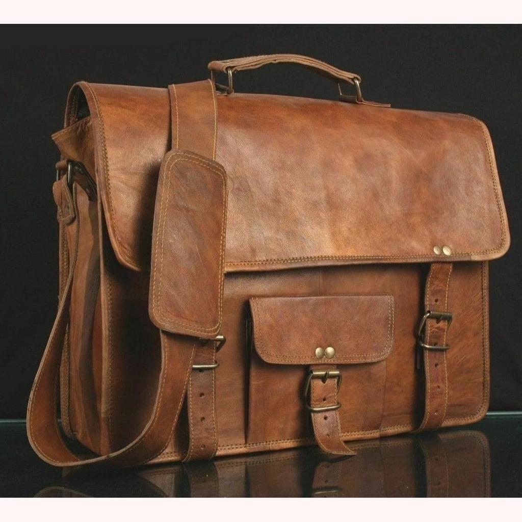 100% genuine goat leather messenger bag with a durable inner lining made of canvas.