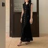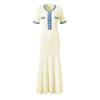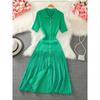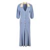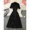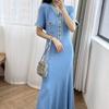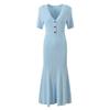 Elegantes französisches kurzärmliges Jeans-Strickpulloverkleid