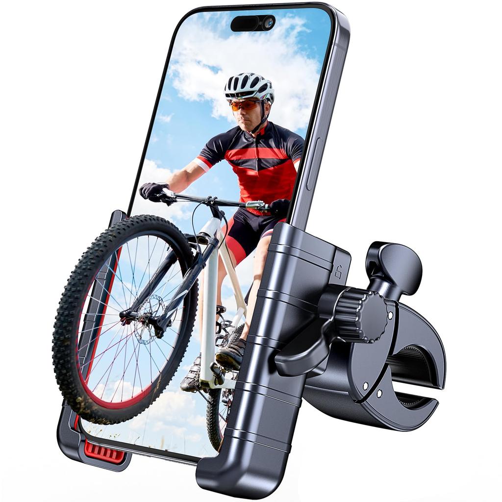 [Stabil & Smartphone-Schutz] Dieser Handyhalter ist aus hochwertigem ABS-Kunststoff, präzisionsgewindetem Stahl, robust, stabil und erdbebensicher. Der Handyhalter hat ein eingebautes Gummipolster, das Ihr Telefon in alle Richtungen vor Abwischen und Verrutschen schützt.. Der Griffclip verwendet die neueste Version des bionischen Krokodilclips in Militärqualität und wird mit einer rutschfesten Silikagelmatte geliefert, um den Griff sicher an Ort und Stelle zu halten, sodass er auch bei Fahrten auf holpriger Straße nicht abfällt, und ermöglicht Ihnen schärfere Kurvenfahrten und plötzliche Bremsungen.