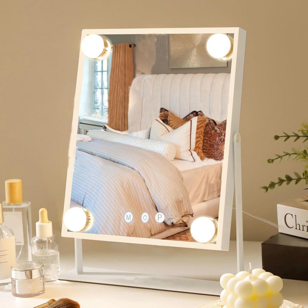 [3 Dimmfunktionen & Stufenloses Dimmen] Der beleuchtete Spiegel ist mit LED-Lichtern in 3 Farben ausgestattet: Tageslicht, Tageslichtweiß und Glühbirnenfarbe, die mit einer Berührung leicht umgeschaltet werden können. (M) Drücken Sie die Touch-Taste, um zwischen 3 Beleuchtungsmodi zu wechseln, hochwertige Antihaft-LED-Lichtquelle, helle und schöne Ansicht! Das LED-Licht im Schminkspiegel ist hell und augenschonend und leuchtet Ihr Gesicht gleichmäßig aus, ohne Schatten auf unebene Bereiche wie Augen und Mund zu werfen, wodurch ungleichmäßiges Make-up verhindert wird.. Zusätzlich ist stufenloses Dimmen durch Gedrückthalten der P-Taste möglich.. Sie können die Helligkeit nach Ihren Wünschen anpassen, was sie in einer Vielzahl von Situationen nützlich macht, wie z. B. beim Schminken, bei der Hautpflege und als Nachtlicht.