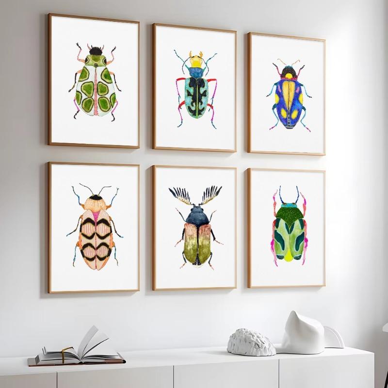 Aquarell Käfer Marienkäfer Poster Druck Buntes Insekt Leinwand Malerei Natur Wandkunst Bild Kinderzimmer Heimdekor
