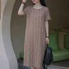 Elegante lange Kleider für Frauen in Übergröße, lockeres Kurzarm-Vintage-Kleid, Sommerkleidung für Damen mittleren Alters