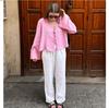 Women's Deep V-neck Flared Sleeve Tied Top Linen Lace Up Long Sleeve for Women Fashion Chic Casual Loose V Neck Shirt