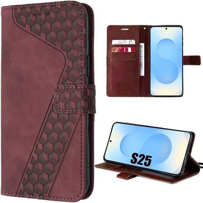 Schutzhülle - BOOLING - für Samsung Galaxy S25 - Geprägtes PU-Leder - Rot - Stoßfest