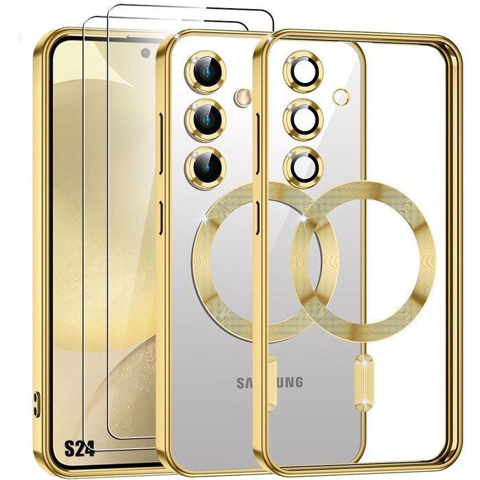 Coque de protection - BOOLING - pour Samsung Galaxy S24 - Doré - 2 Verres Trempés - Antichoc