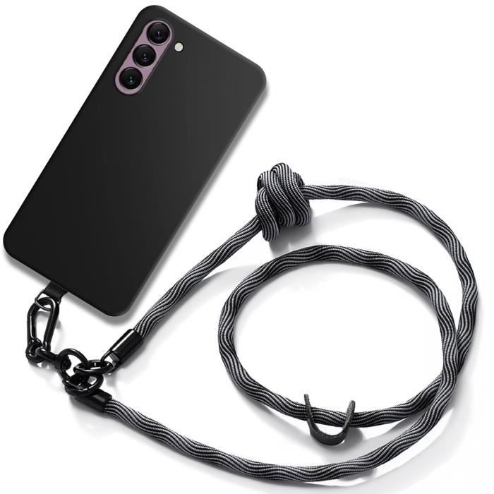 Schutzhülle - BOOLING - für Samsung Galaxy S23+ - Silikon Schwarz - mit Grauem Umhängeband - Flexibel