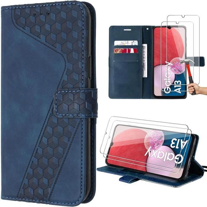 Schutzhülle - BOOLING - für Samsung Galaxy A04s/A13 5G - Geprägtes PU-Leder - Marineblau - Multi-Positions-Ständer