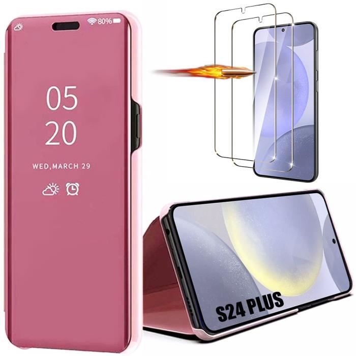 Hülle - BOOLING - S24 Plus - Spiegeleffekt - Verstärkter Schutz - 2 gehärtete Gläser