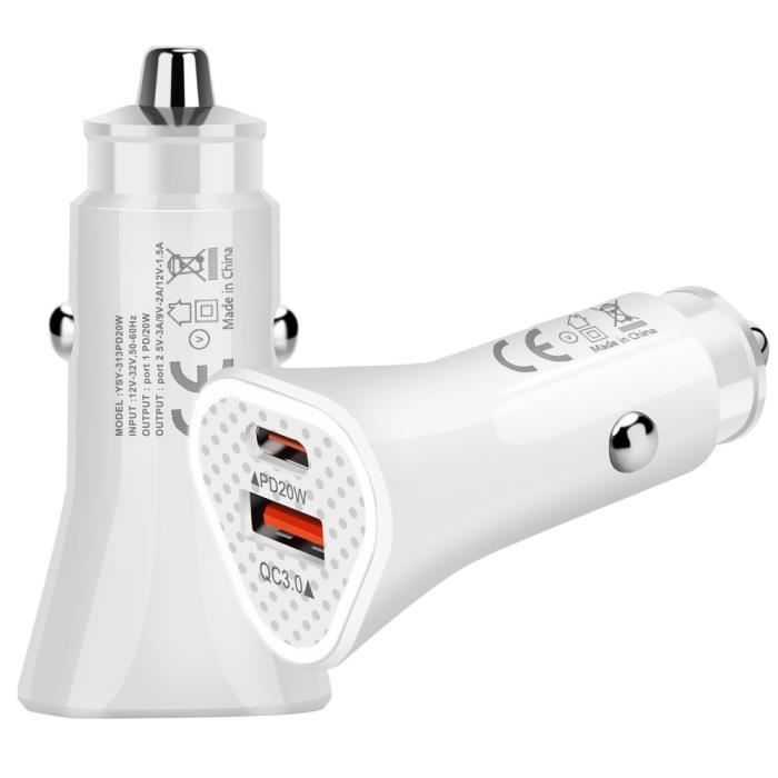 Zigarettenanzünder-Ladegerät - Dreamsoul - Sy-313Pd20W - USB + PD 20W - Typ-C - Universell - Weiß