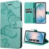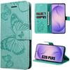 Coque pour Samsung Galaxy S24 Plus - BOOLING - Antichoc en Cuir PU à Motif Papillon - Vert