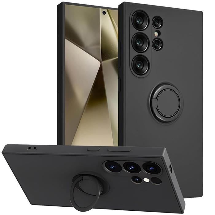 Silikonhülle - BOOLING - für Samsung Galaxy S24 Ultra - Stoßschutz - Drehbarer Ständerring - Schwarz