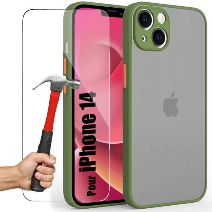 Hülle für iPhone 14 - Khaki - Ultradünn - Silikon - Stoßfest - 2 gehärtete Gläser