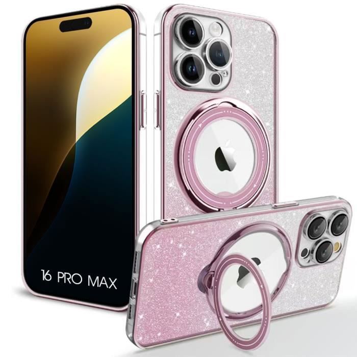 Schutzhülle - BOOLING - für iPhone 16 Pro Max - Silikon - Drehbarer Ständer - Rosa
