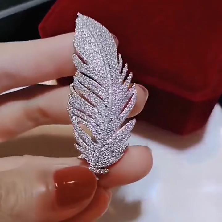Elegante silberfarbene Federbroschen voller Strasssteine für Damen, Herren, Unisex, Luxus-Kristall-Reversnadeln, Party-Schmuck