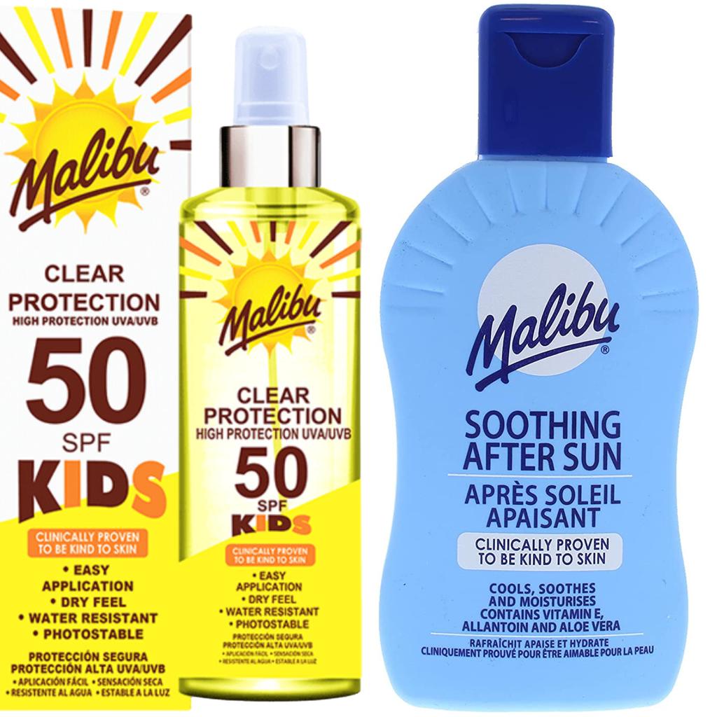 Malibu farbloses Spray für Kinder SPF50 250ml + Balsam nach dem Sonnenbad 200ml