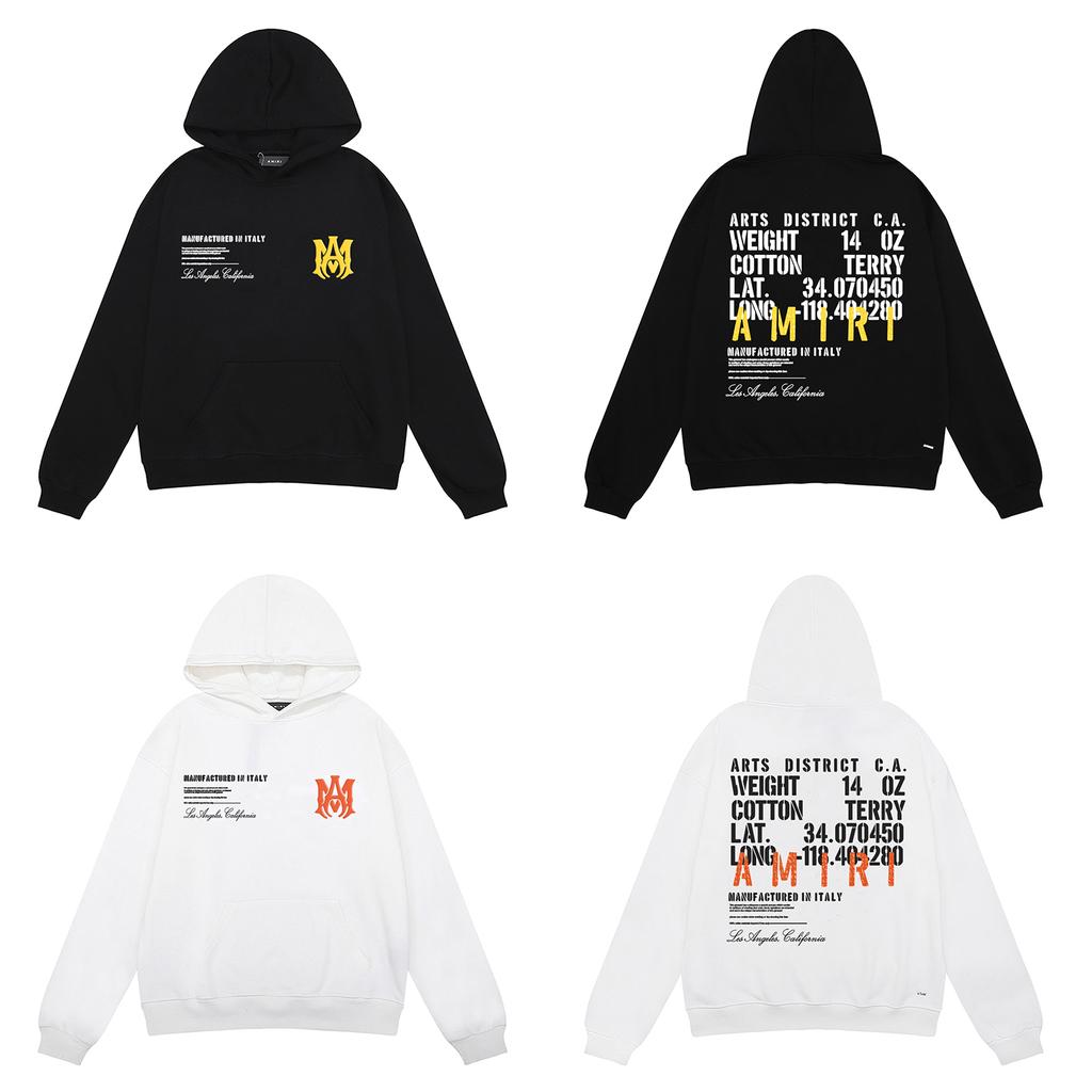 Amiri Arts District Poster Buchstabenaufdruck Frühling und Herbst Locker Übergröße Dünn Hochwertige Baumwolle Kapuzenpullover für Paare