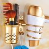 Haartrocknerhalter mit Becher Haushalte Ablage Haarfönregal Metall Wandmontage Badezimmerzubehör Gold Haartrocknerständer Bad