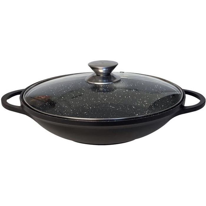Wok - 36cm - couvercle en verre - antiadhésif - poignées en silicone