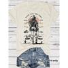 Damen Denim Bedrucktes Kurzarm Locker und Modisches T-Shirt