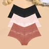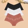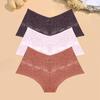 FINETOO 3 Stück Damen Spitze Floral Boyshort Sexy Hollow Out Unterwäsche Niedrige Taille Atmungsaktive Slips Mädchen Weiche Transparente Lingerie