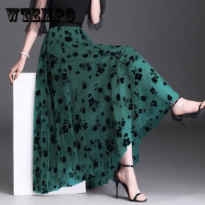 Spitze Großer Blume Regenschirmrock für Frühling und Sommer, Hohe Taille, Schlankmachend und Großer Schwung, A-Linien Mesh-Rock, Midilanger Rock, Damenrock