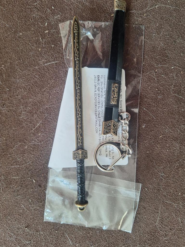 Neuheit Mini Schwertform Anhänger Schlüsselanhänger Kreatives Waffenmodell Spielzeug Schlüsselring Rucksack Dekoration Zubehör Geschenke