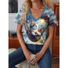 2025 camiseta para mujer Kawaii gato gráfico moda manga corta cuello pico Tops regulares estampado diario camiseta verano primavera casual Tops