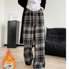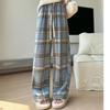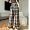 Retro Karohose für Damen im Frühling und Herbst Neue hochtaillierte drapiert geschnittene Hose mit geradem Bein Lockere lässige Hose mit weitem Bein